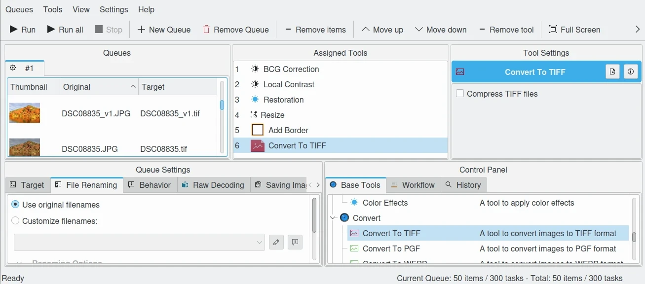 Use o gerenciador de processamento em lote digiKam para processar itens em paralelo