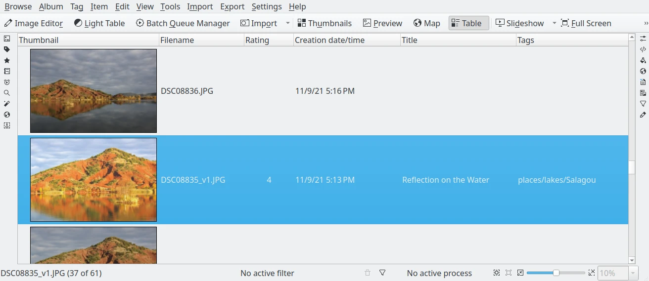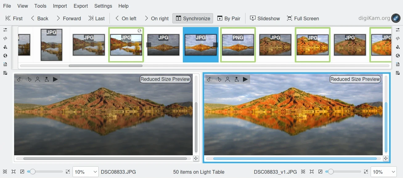 Use a mesa de luz digiKam para comparar itens lado a lado