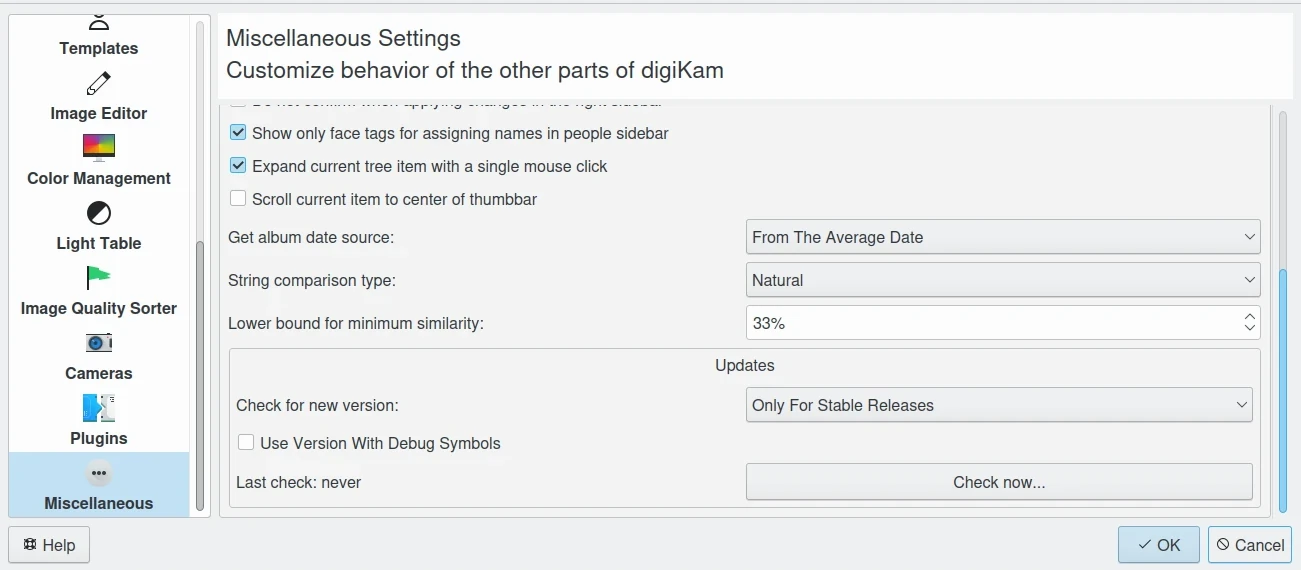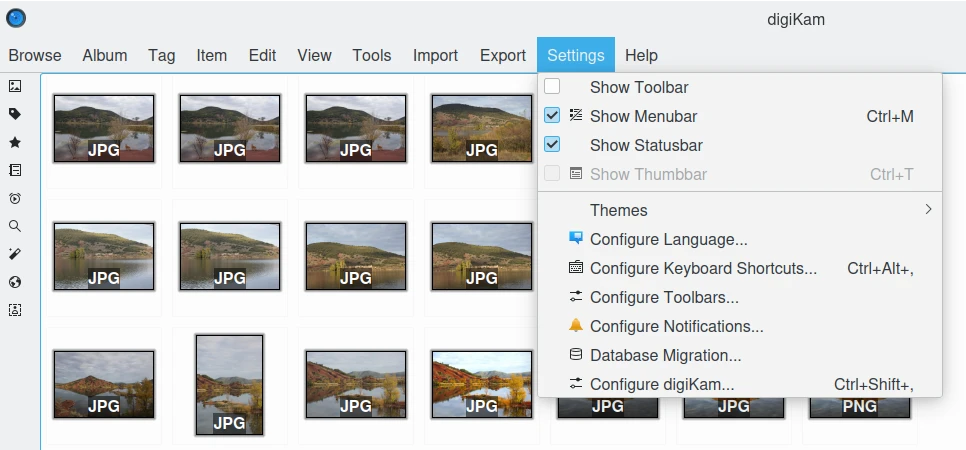 Use o Painel de Configuração para personalizar o digiKam