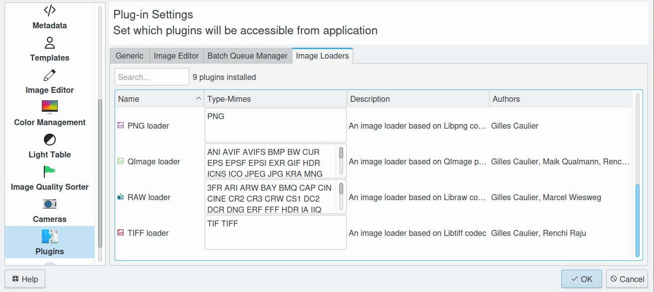 Formatos de arquivo e dispositivos suportados no digiKam