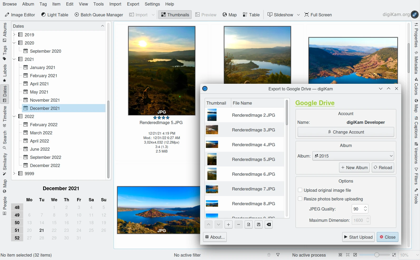 O digiKam com uma visão hierárquica das Datas da fotografia que pode ser facilmente exportada para um serviço web remoto¶