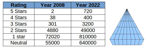 O seu sistema pode variar, mas deve haver muito menos imagens classificadas a cada aumento no número de estrelas atribuídas. Uma proporção de 3 para 10 entre cada nível se mostrou útil.