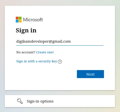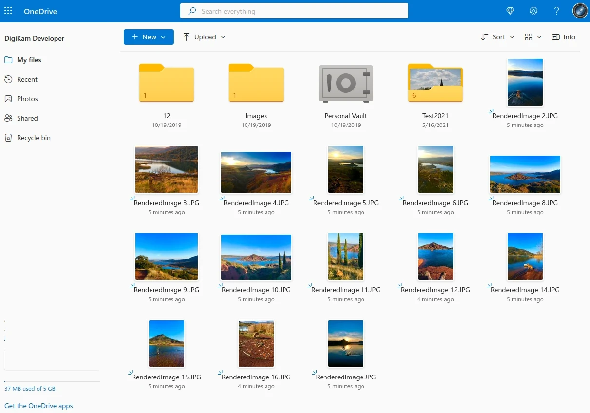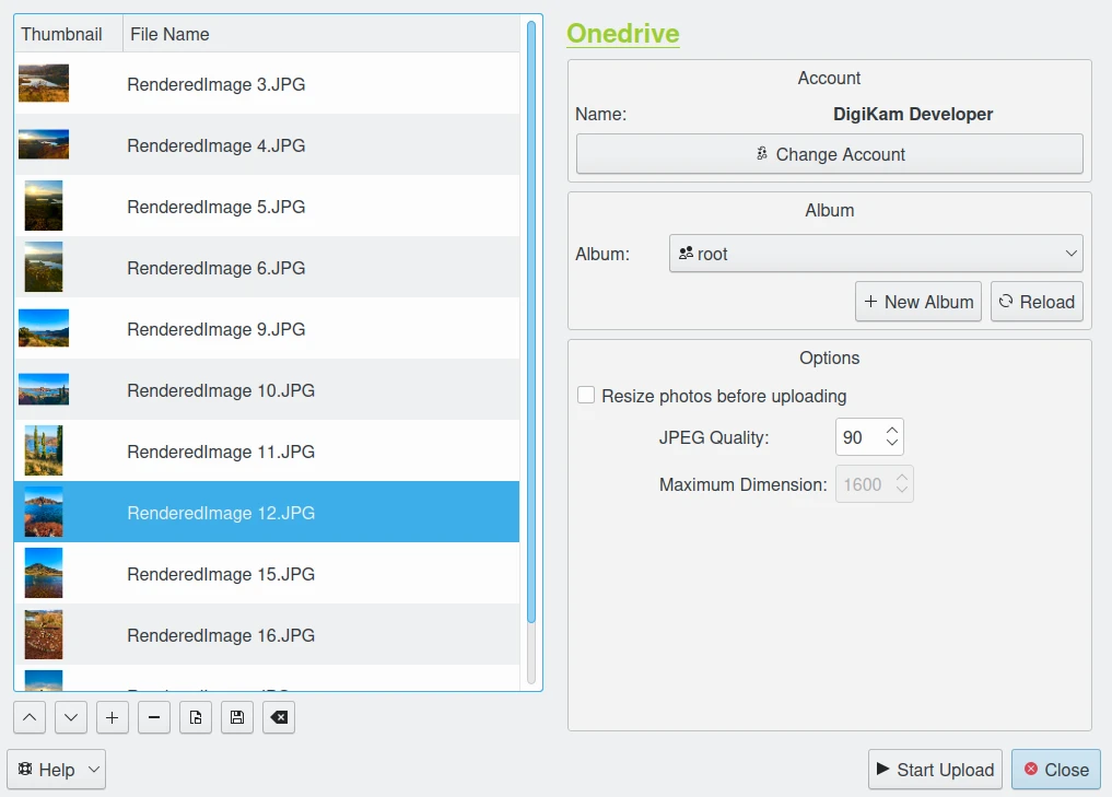 Após o login bem-sucedido, o digiKam poderá enviar fotos para o site do OneDrive.