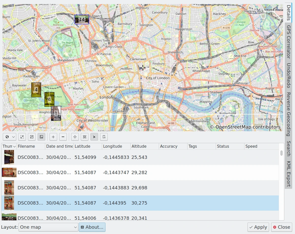 O Editor de geolocalização, o tópico desta seção, é a ferramenta para definir e editar dados de GPS. O editor de geolocalização pode ser acessado via Ctrl+Shift+G ( no Showfoto).