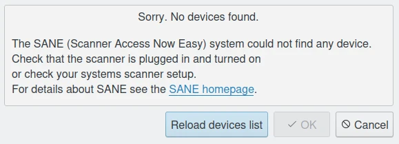 Nem todos os drivers ou backends suportam o recurso de Recarregar. Nesse caso, feche a ferramenta, conecte seu scanner e reinicie o digiKam.