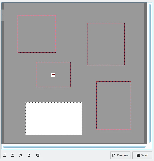 Se você colocar duas imagens ou fotos separadas no seu scanner e executar uma digitalização da visualização, a ferramenta pré-selecionará automaticamente as diferentes áreas.