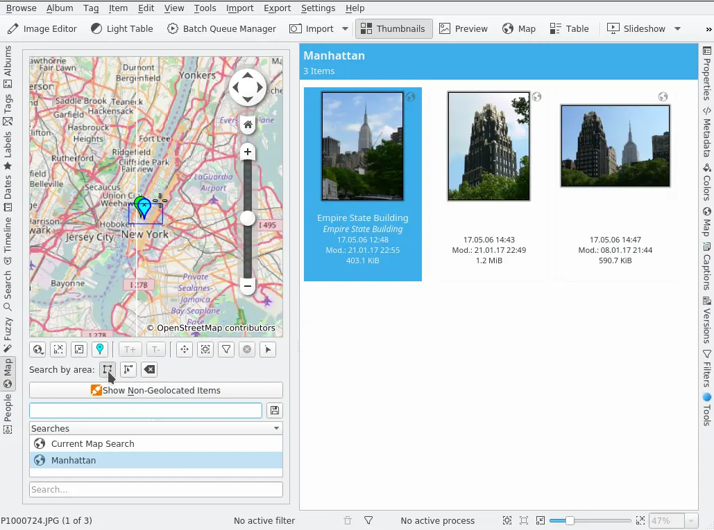 Ferramenta de pesquisa de mapa na barra lateral esquerda do digiKam¶