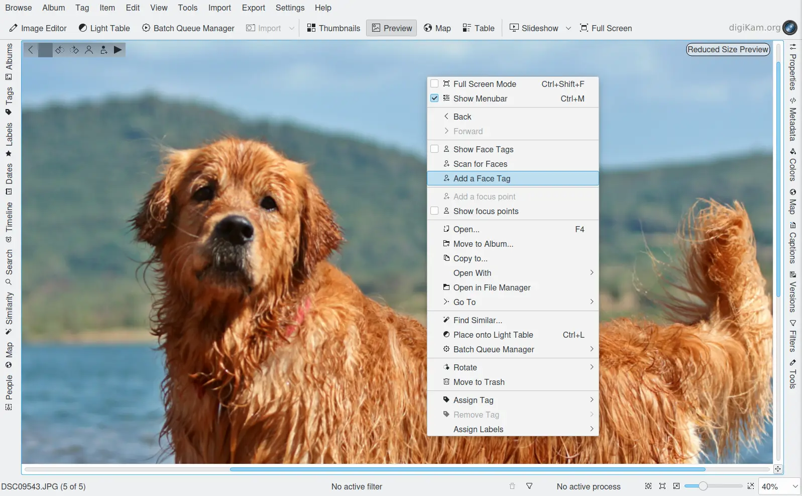 Marcação manual de rostos a partir do menu de contexto do digiKam¶