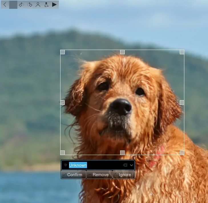 O botão Excluir remove a região do rosto do banco de dados se a sugestão não for um rosto.