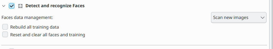 Opções de manutenção do digiKam para detectar e reconhecer rostos¶
