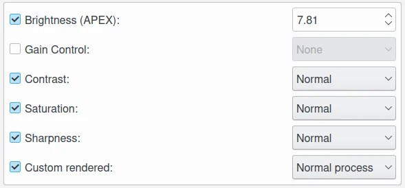 Brilho: esta caixa de seleção permite que você edite o valor de ajuste de brilho na unidade APEX usada pela câmera para tirar a foto.