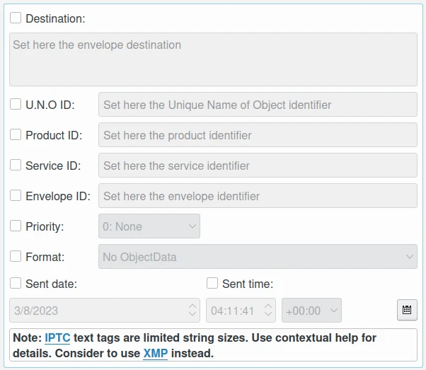 Exibição do envelope do IPTC da ferramenta de edição de metadados¶