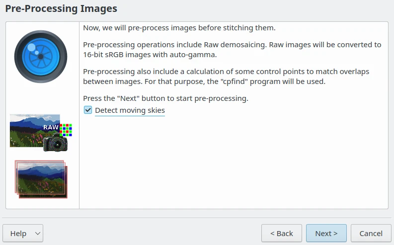 Estágio de pré-processamento do assistente do criador de panorâmica¶