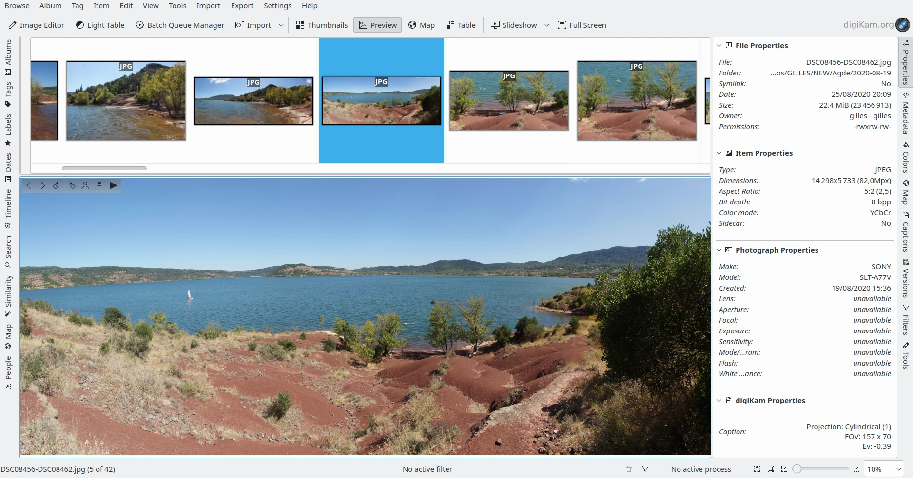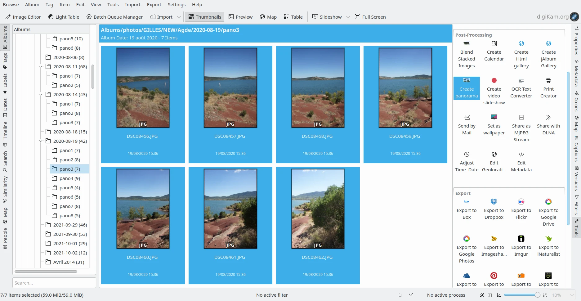 Os arquivos JPEG panorâmicos montados exibidos no digiKam¶