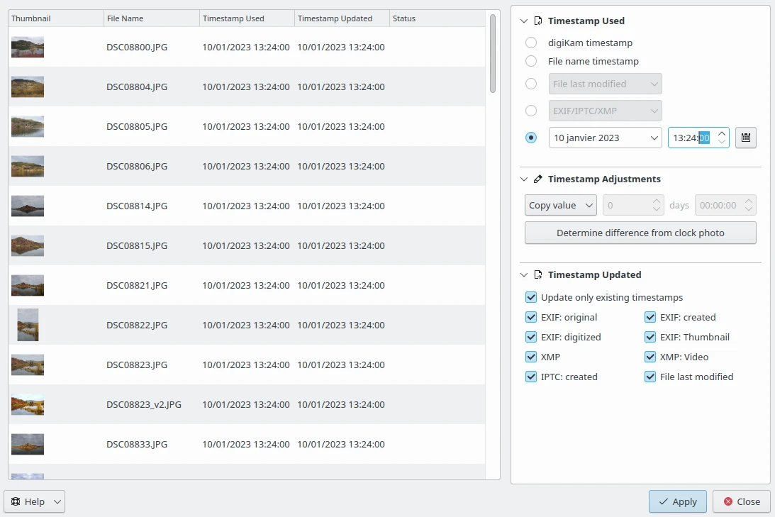 A ferramenta de ajuste de data e hora do digiKam ajusta itens de data e hora¶