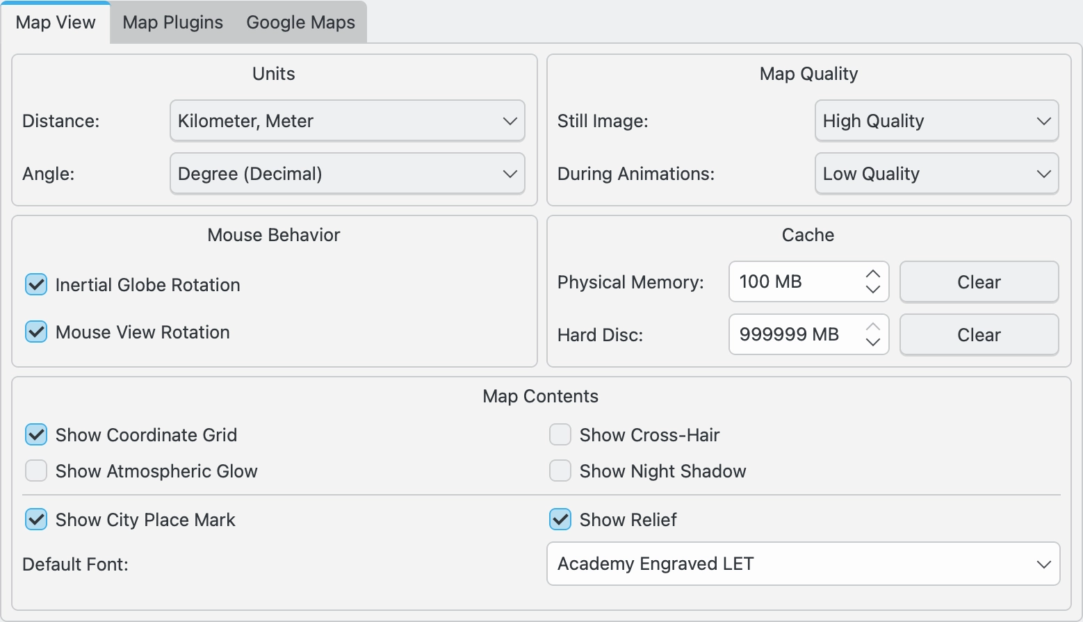 Configurações da vista do mapa¶