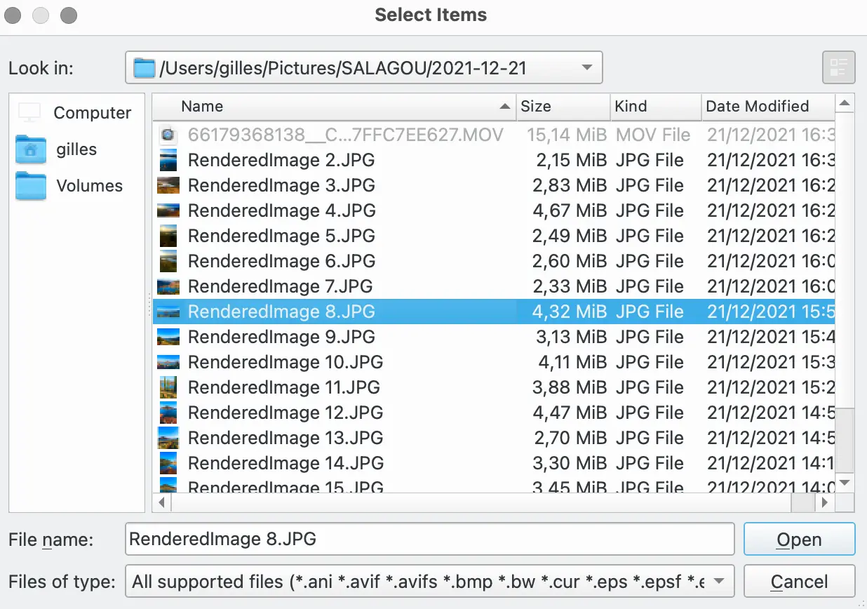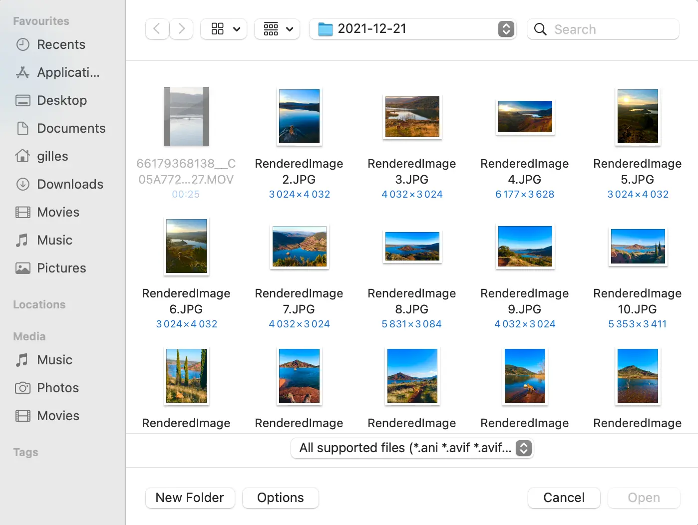 Caixa de diálogo básica de abertura de arquivo no macOS |