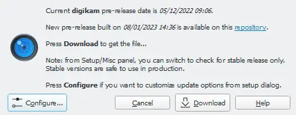 Caixa de diálogo no Windows quando uma nova versão do digiKam estiver disponível online¶