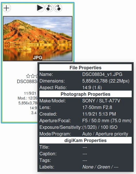 Para habilitar as dicas em Itens importados, você pode precisar ativar a opção Usar os metadados do arquivo no painel de configurações de Comportamento da câmera. Consulte esta seção deste manual para obter mais detalhes.