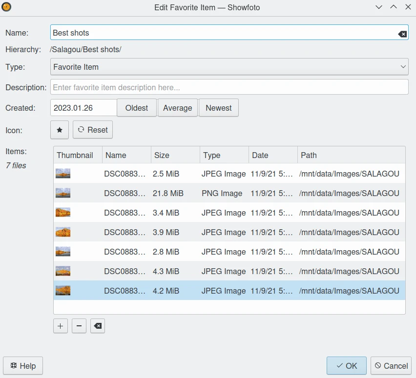 A janela do Showfoto para editar propriedades do favorito¶