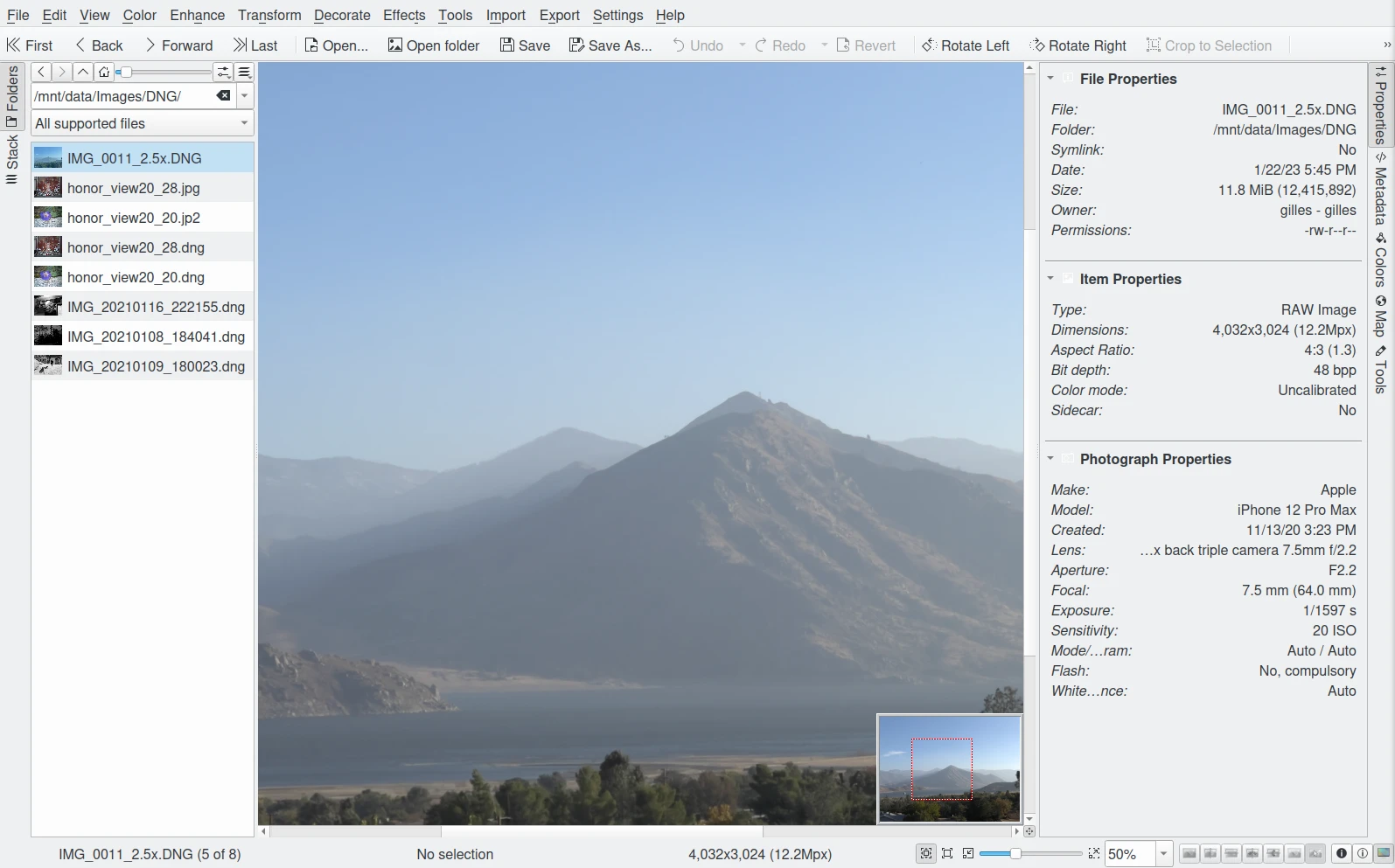 O Showfoto carregando um arquivo Apple ProRAW baseado em DNG tirado com um iPhone¶