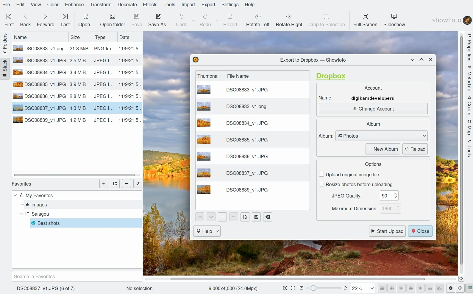 O Showfoto exportando a pilha atual para o serviço web Dropbox¶