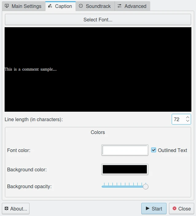 Configurações de legenda da ferramenta de apresentação¶