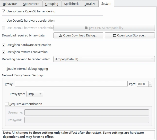 Download Required Binary Data: this button loads the deep-learning model files used with the face management, image quality scanning, and auto-tags features. Only use it if you bypassed this stage at the first-run of the application.
